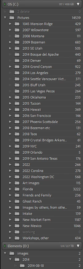I've only worked on current images (all on c:) since then until today I wanted to see if I had images in Shutterfly that I hadn't downloaded (prior to Shutterfly shutting down access)