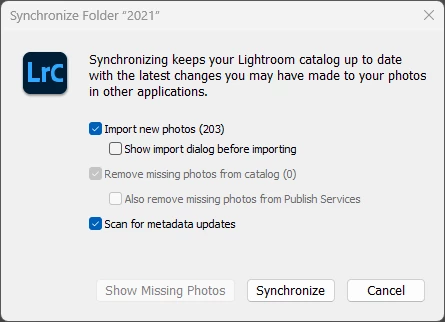 "Synchronize Folder" does not work. At least it does not see folders/images to be imported.