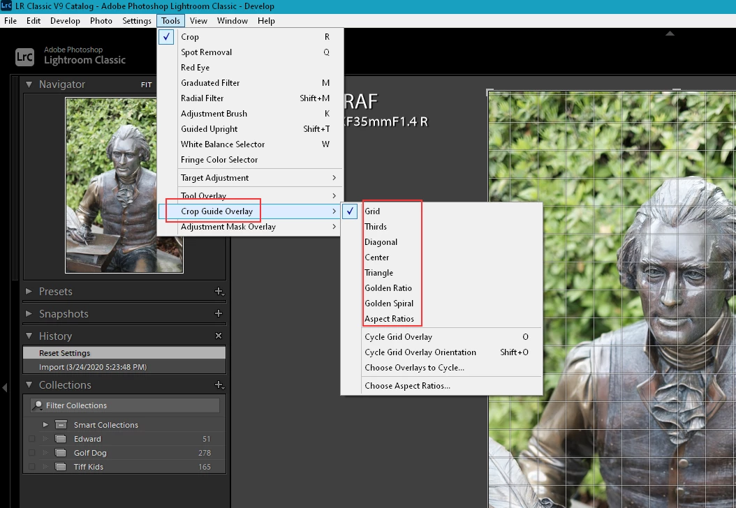While cropping, it is common to align a part of the image exactly in the center of the frame, which was difficult to do precisely with a 3x3 grid overlay. However, now you have an option to use a 2x2 grid overlay while cropping an image. This centered crop overlay provides guidance on the center of the image and allows you to precisely crop your image.