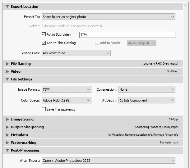 Hi I am struggling with this one, can't seem to find an answer anywhere. I want to be able to change the save location of .tif files on my HDD. I edit real estate photos that I've taken. I have a folder structure like this: