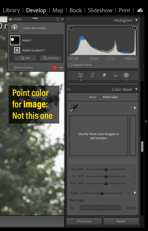 If I choose a mask e.g. subject and after that want to use the point color from the color mixer the mask menu closes and the point color uses the selected color of the whole picture instead of the preferred mask