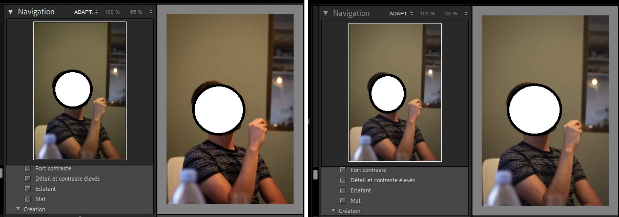 I'm facing a strange issue with lightroom. The main photo that I edit looks different from the one in the navigation pane (or the lower pane). They are both shown on the same screen.