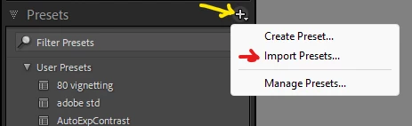 In Presets panel in Develop, there is a drop-down menu from icon at top right corner
