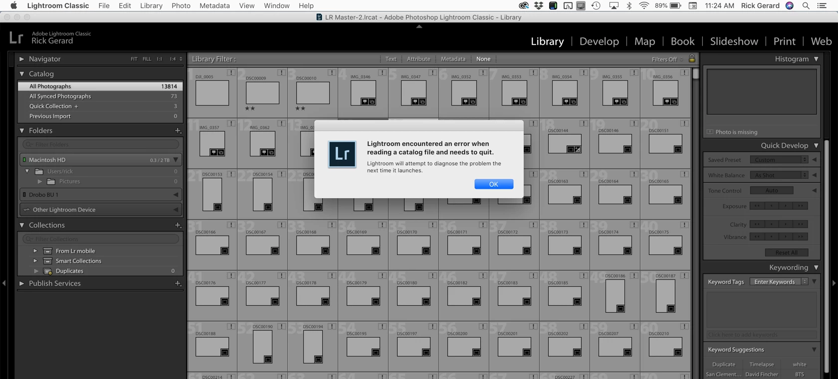 Something on my MacBook Pro is killing catalog files and fouling up sync. I wish I knew what it was.
