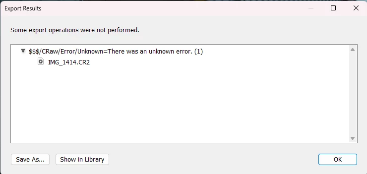 Hi all, I hope someone can help. Since the upgrade to V13, I have been getting the below error when I try to export an edited photo. I've tried on earlier photos, and ones imported since upgrade, and issue with them all.