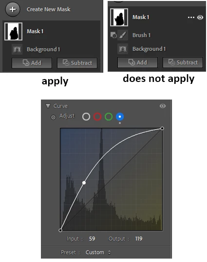 Curve corrections for the mask are not applied when exporting a photo if the mask contains more than one element.