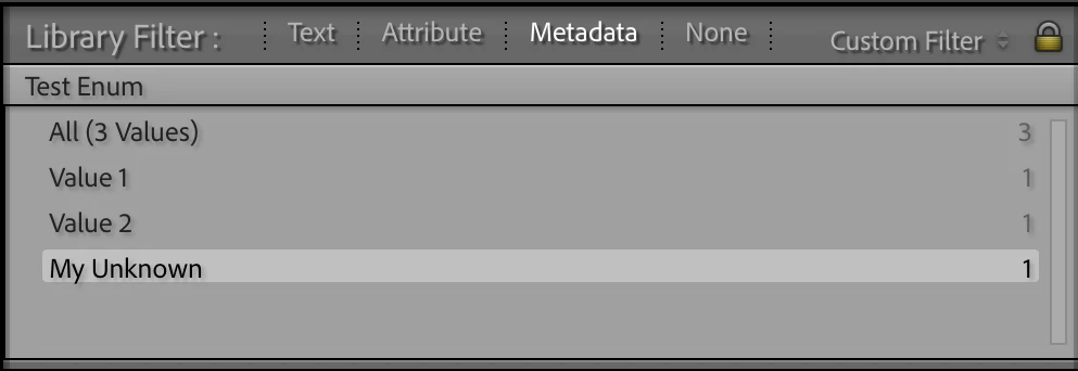 • In the Metadata panel I selected 2 photos, one with value 1 and one with nil