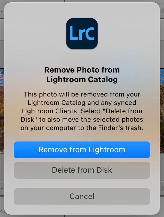"Delete from Disk" in Lightroom Classic on my Mac Mini, does not end in trash