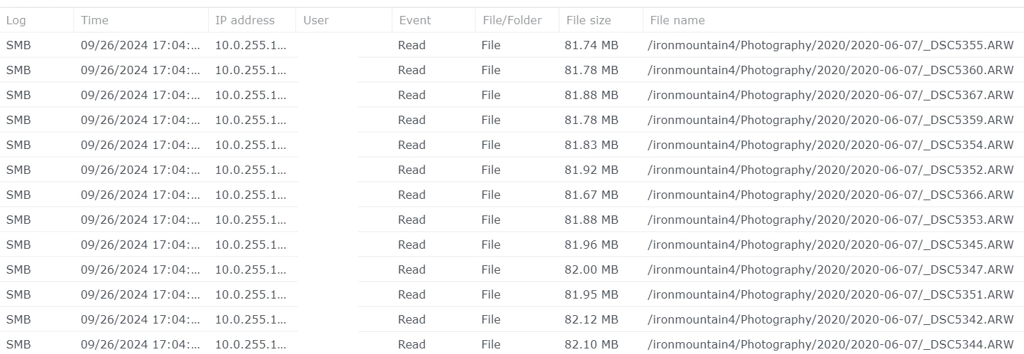 I connected to my NAS and enabled SMB logging and that's when I saw tens of thousands of entries of Lightroom reading every single file in my catalog at a pace of about 10 images/sec.