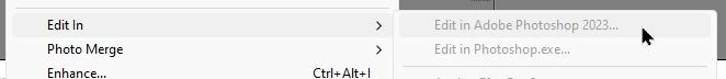 Je repars sur Lightroom, les deux logiciels sont toujours ouverts, et je retravaille un peu sur une photo puis lorsque je fais encore un click droit sur la photo - Modifier dans - toutes mes options sont grisées !