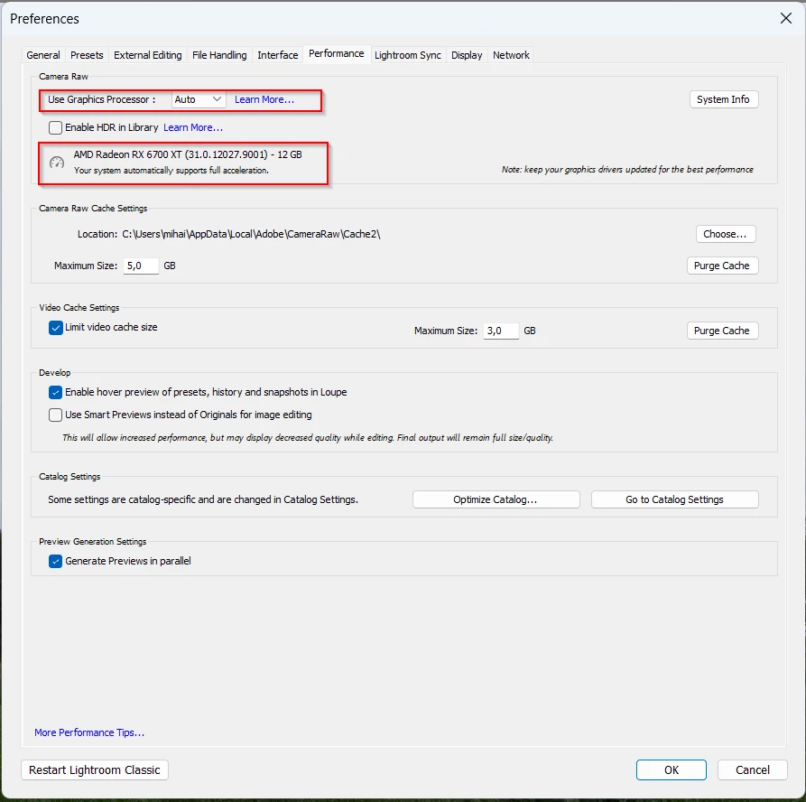 Settings Folder: C:\Users\mihai\AppData\Roaming\Adobe\Lightroom