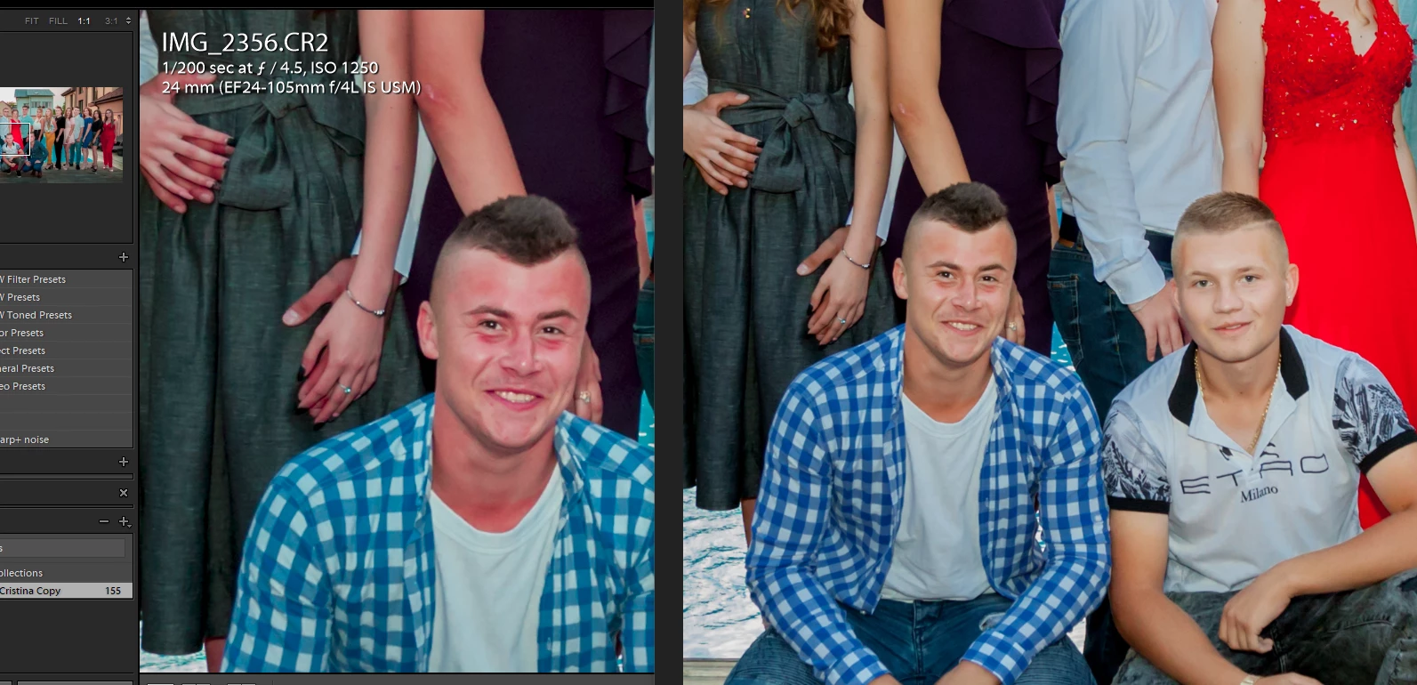 side is in LR develop, right is the exported photo.