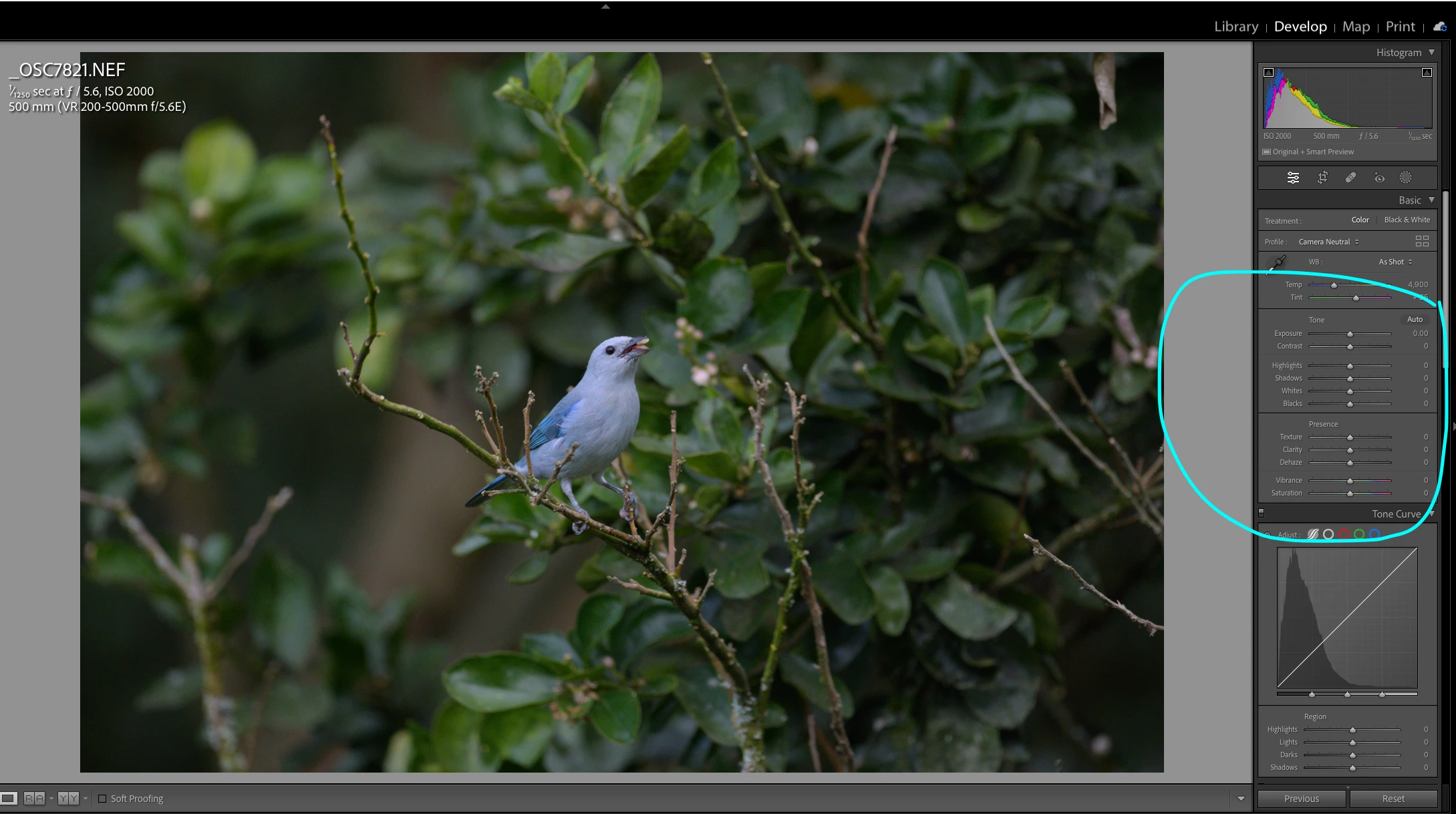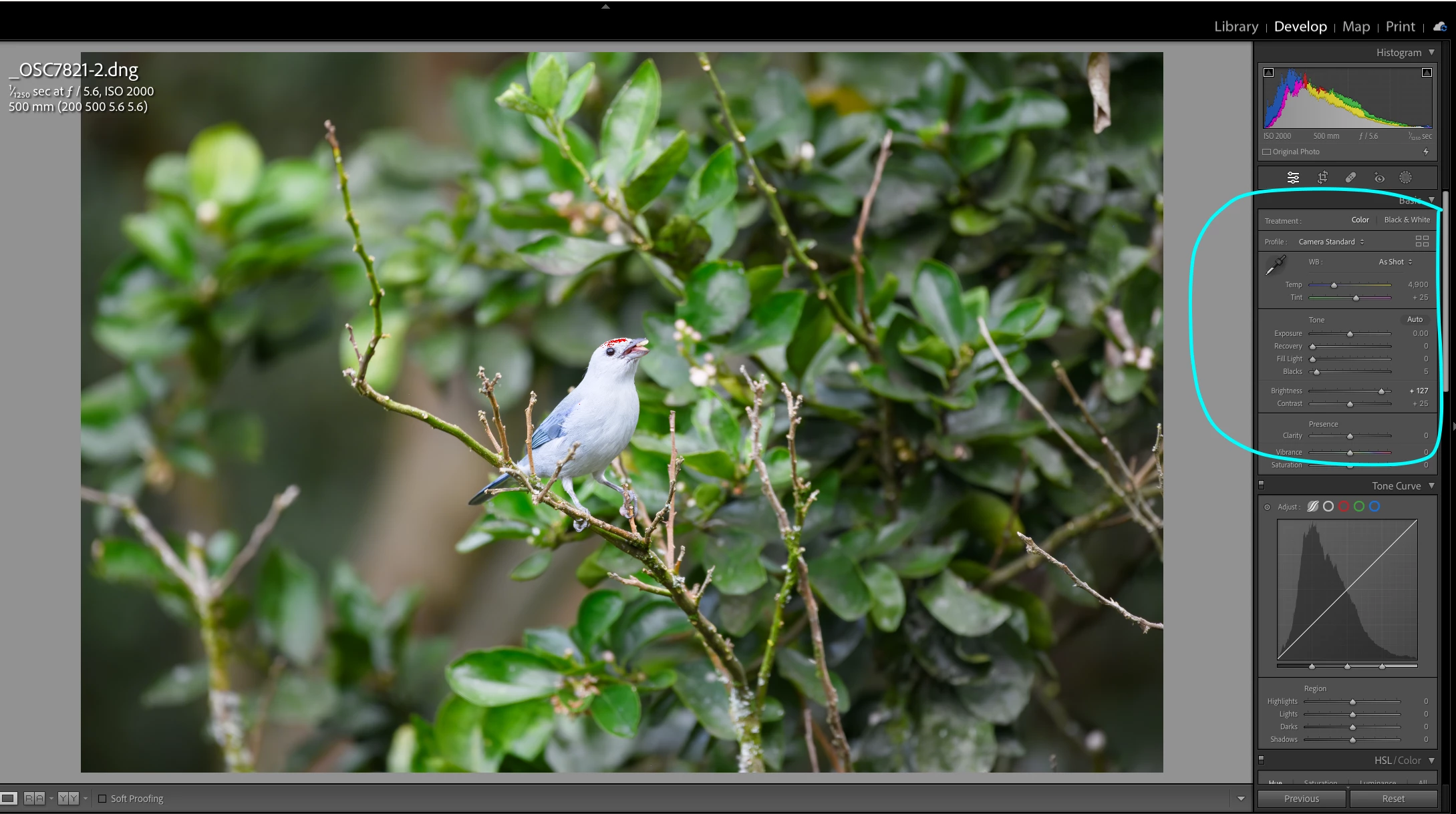 Different tools in the Adjustment Panels ( Developing Module) for DNG and RAW files