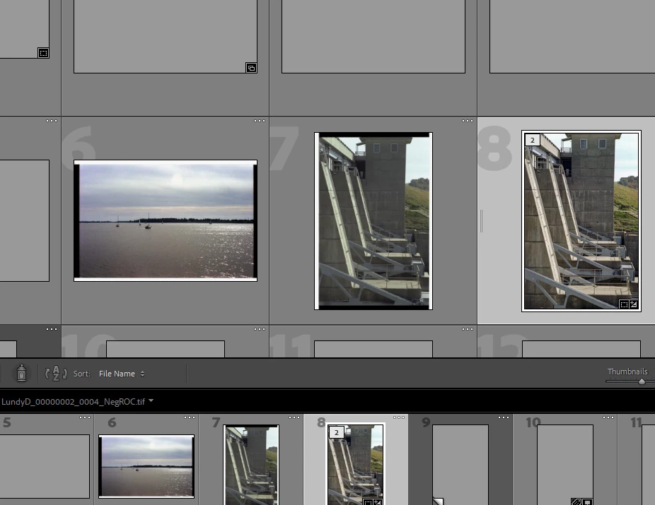 - I go back to the library module and the three that showed in the develop module now show in the grid and filmstrip. All others remain gray.