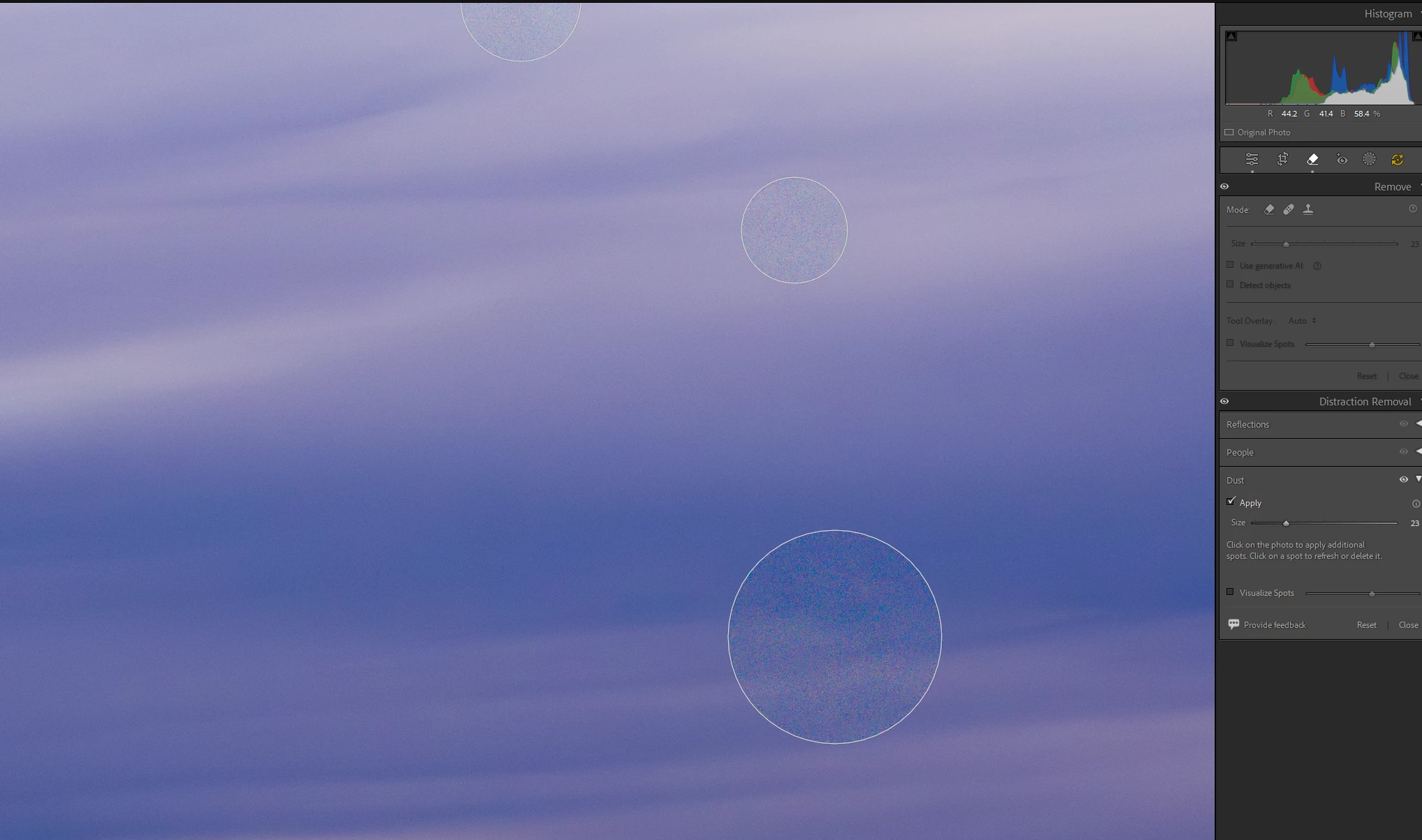 Distraction Removal: Dust (Camera Raw and Lightroom Classic)