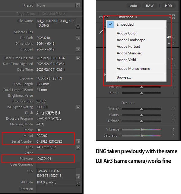 DJI RAW Camera Profiles Have Disappeared