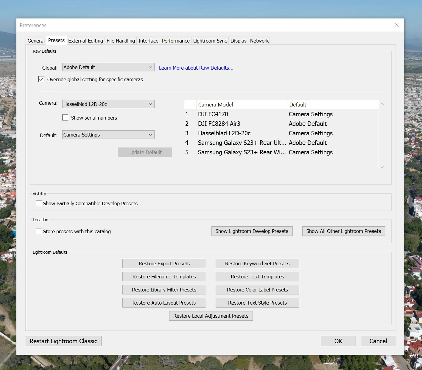 All was fine. Then I changed the default save locations for RAW settings and the gallery. All the profiles have disappeared though they show in the preferences - but - suddenly the Air 3 profile disappeared from that window all of a sudden.