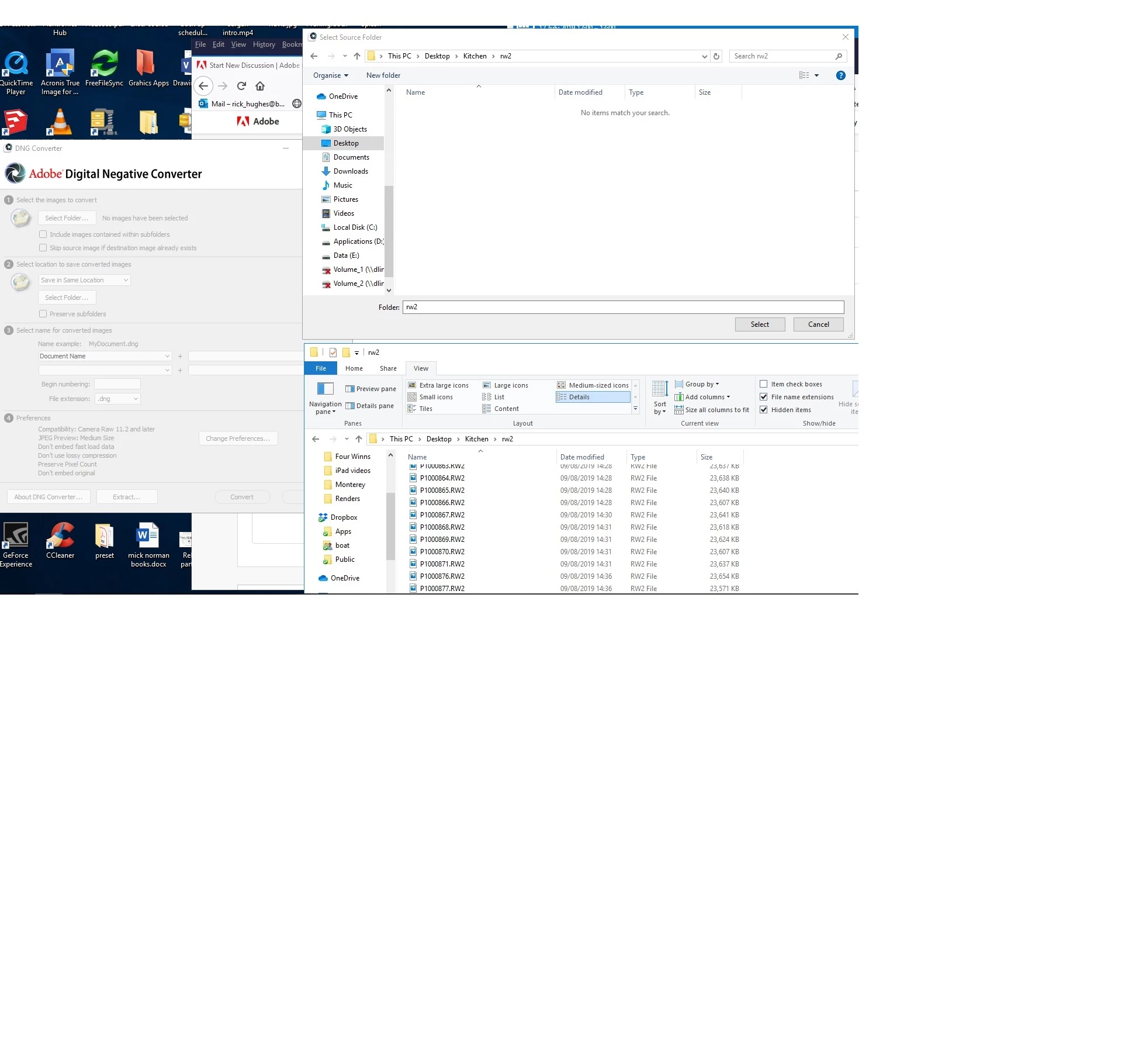 As an example ... pic attached shows DNG converter open .. and I have pressed 'select folder' you can see that in the top window (import folder view) DNG converter sees no files ... yet in the lower window a standard file explorer view you can see the RW2 files are present.