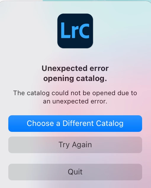 I get the same error, but it is funky. Sometimes it works, and sometimes it does not. I have been on Big Sur betas since May, and now on RC 11.0.1, and Adobe is updated as well. For the longest time there were no problems at all, only lately, the last two weeks have I experienced the "Unexpected error opening catalog". Sometimes it works if I reboot, and sometimes it works if I create a new library, and then change to one of my old ones.