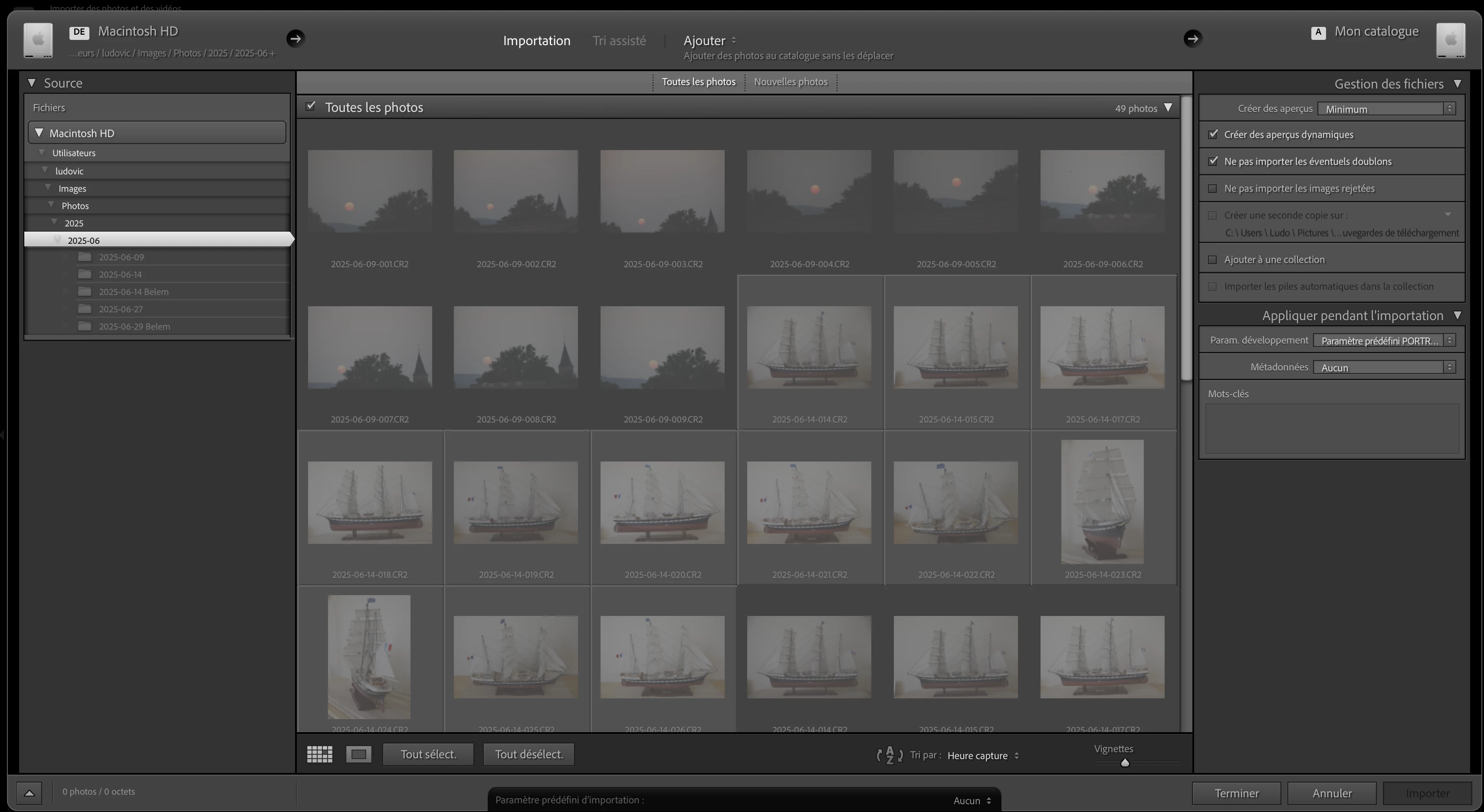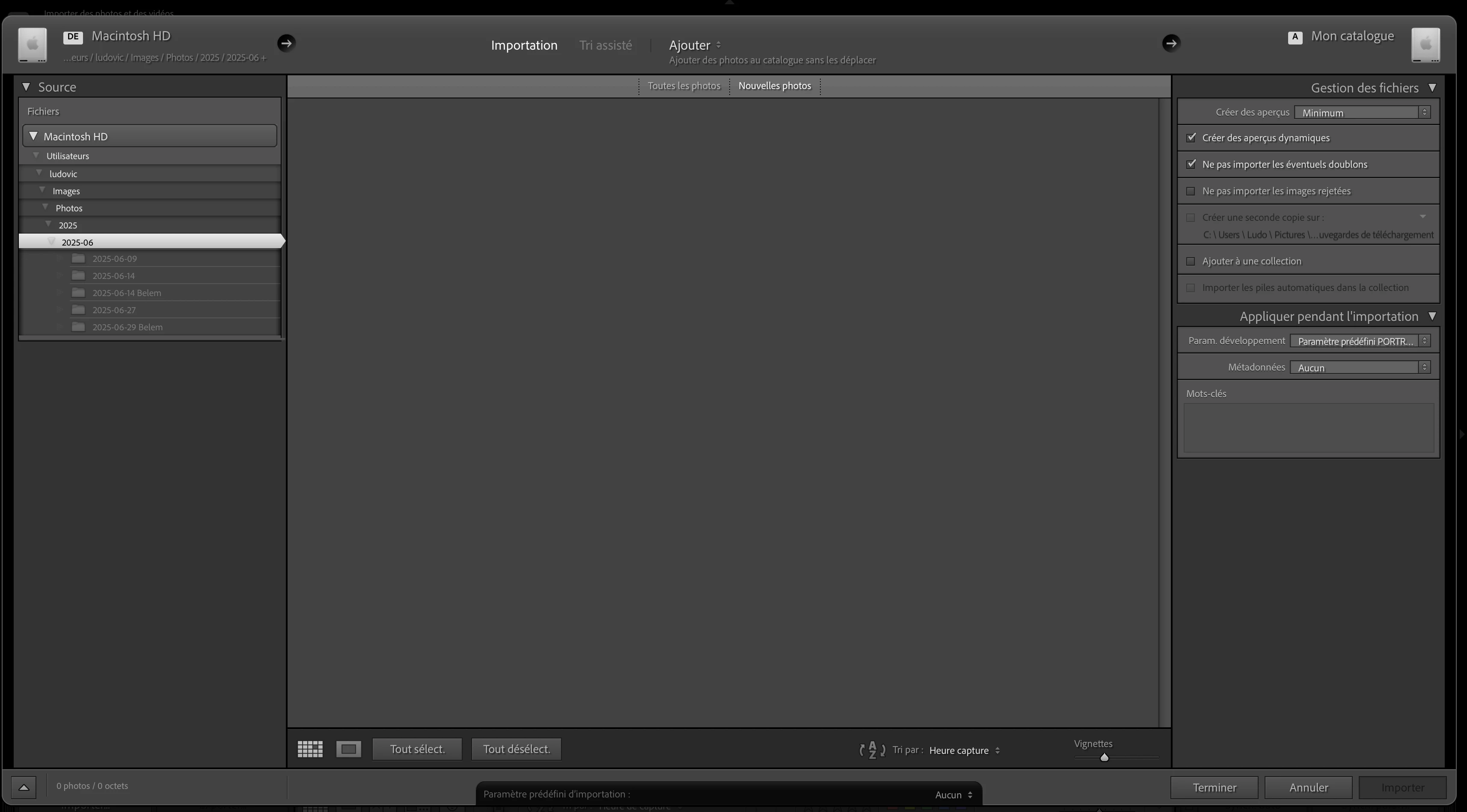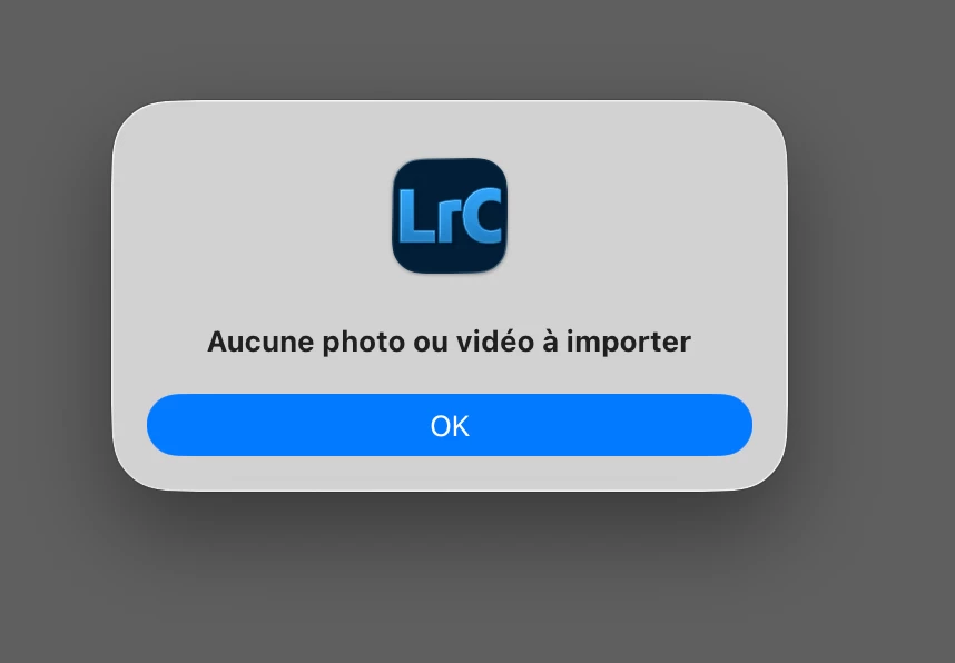 Sans la boite de dialogue, aucune photo n'est importée.