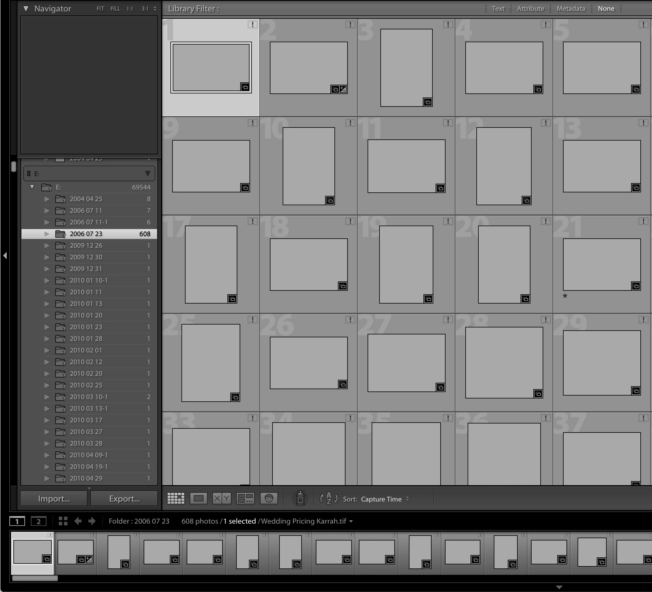 Unfortunately I never created a parent folder under drive E and now have hundreds (maybe thousands) of dated folders under the following file structure (photo attached). When I try to locate the missing files in Lightroom, I can only locate the folders one at a time, which isn't a viable option considering the vast amount of folders that there are under drive E. Is there any way that I can locate and update all of these folders at once?