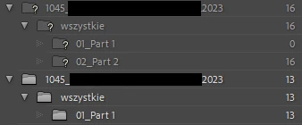 But for some sub-folders it can't find them. When I click on the exclamation mark on a picture in "missing" folder" and locate the file, the directory containing this file is duplicated (booth have same name!):