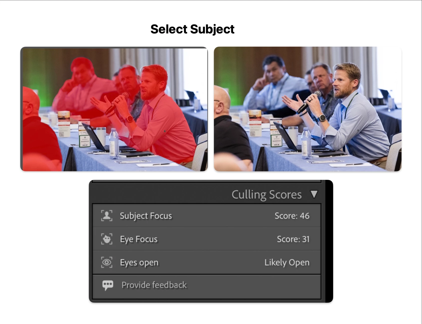 That said, I want to provide my insight on this as a full time corporate event photographer. In my testing (albeit limited) the issue I'm facing with Assisted Culling actually stems from the issues I have with the way Subject & Background detection are implemented in Lightroom.