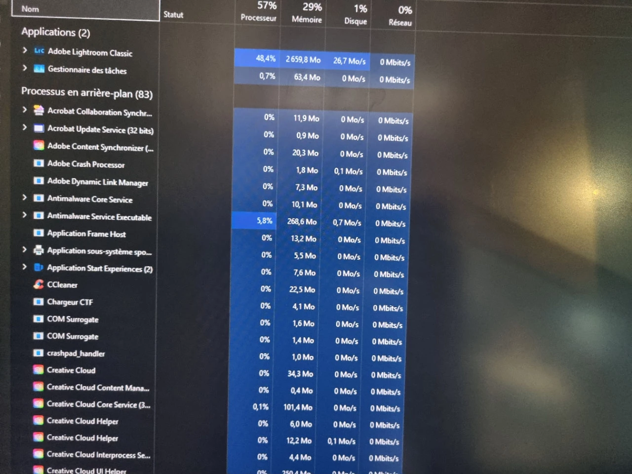 J'ai lightroom qui plante : ecran noir et PC bloqué lorsque je charge des photos dans la bibliothèque quand les aperçus se crée. C'est un problème récurent qui rend lightroom inutilisable.