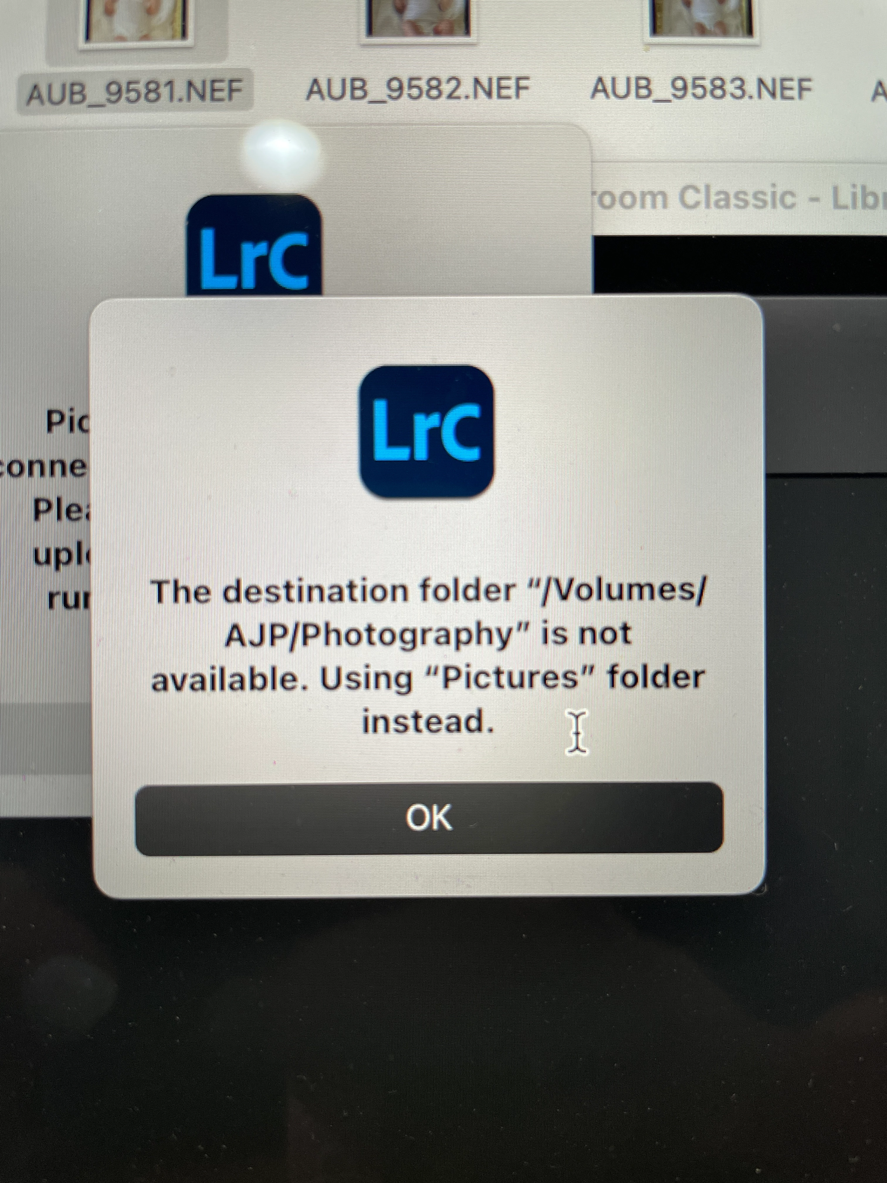 Hi everyone! I am hoping someone much smarter than me can help. I use LR Classic and I went to pull up an image and it was not showing. I quickly noticed a lot of images were not showing up. My process is to upload my images to LR but save on an external hard drive to not take up space on my computer. I can find all the Raw files and access them on the external hard drive. I tried to drag an image back into LR to edit it and I got this error message. I am not sure what is happening, but I am praying I haven't lost all of my edited images. Anyone have any ideas about this issue??