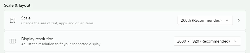 However, the display 1 is 2880x1920, with scale 200% as recommended: