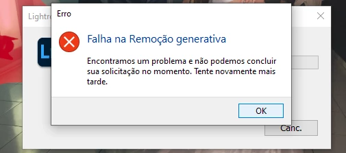 Faz um tempo que não consigo usar a Remoção Generativa usando a IA.