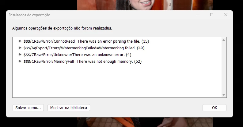 FFrancisco281597050379ParticipantForum|Forum|2 years agoNovember 19, 2023QuestionErro no lightroomForum|Forum|2 years agoNovember 19, 20232 replies158 viewsEstou com problema no lightroom, ja desativei a opção de desempenho da placa de video e ainda acontece esse erro quando estou exportando. Aproveitando, o photoshop, fecha do nada. o que pode ser?App installs and updatesOthers