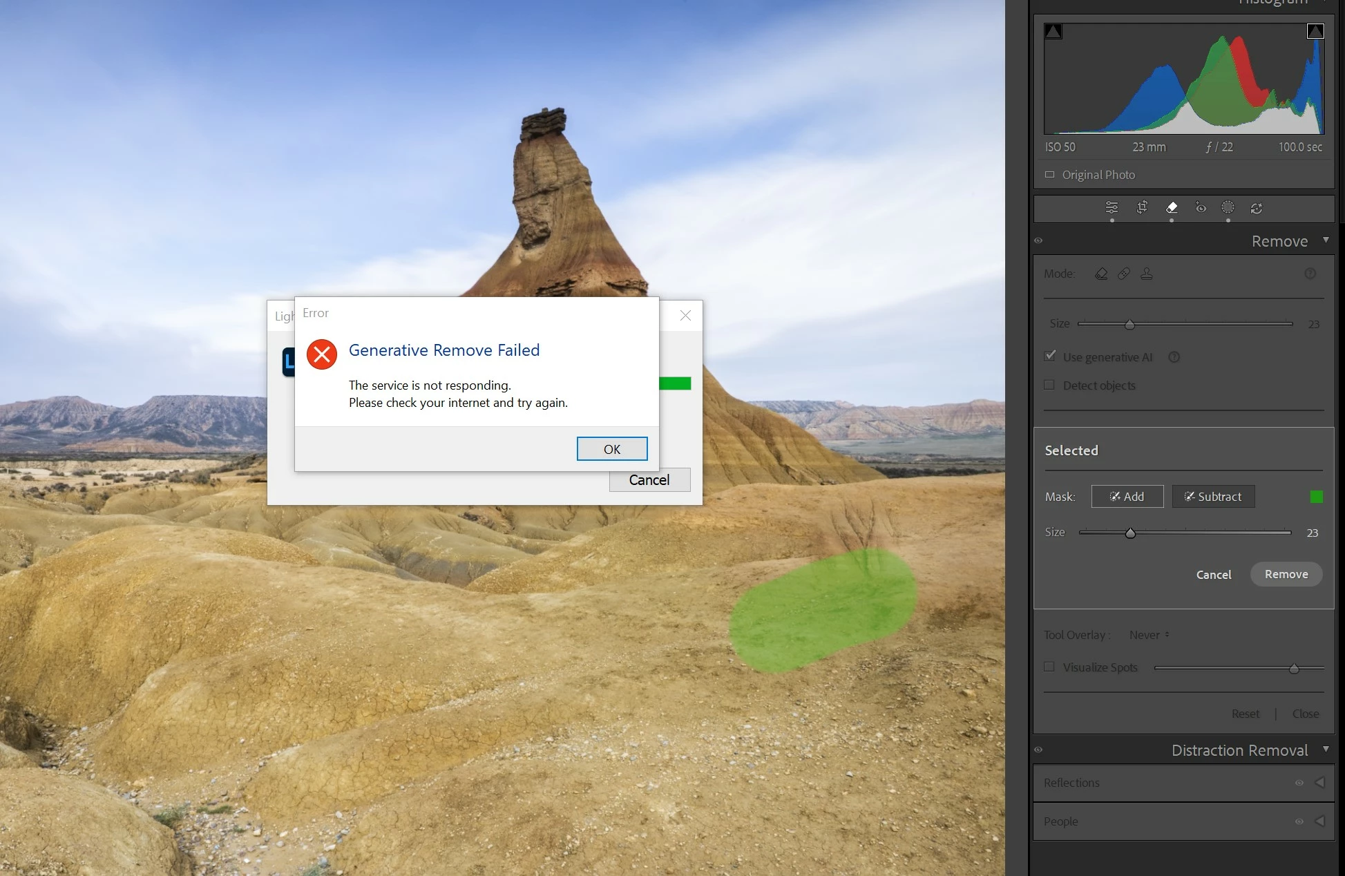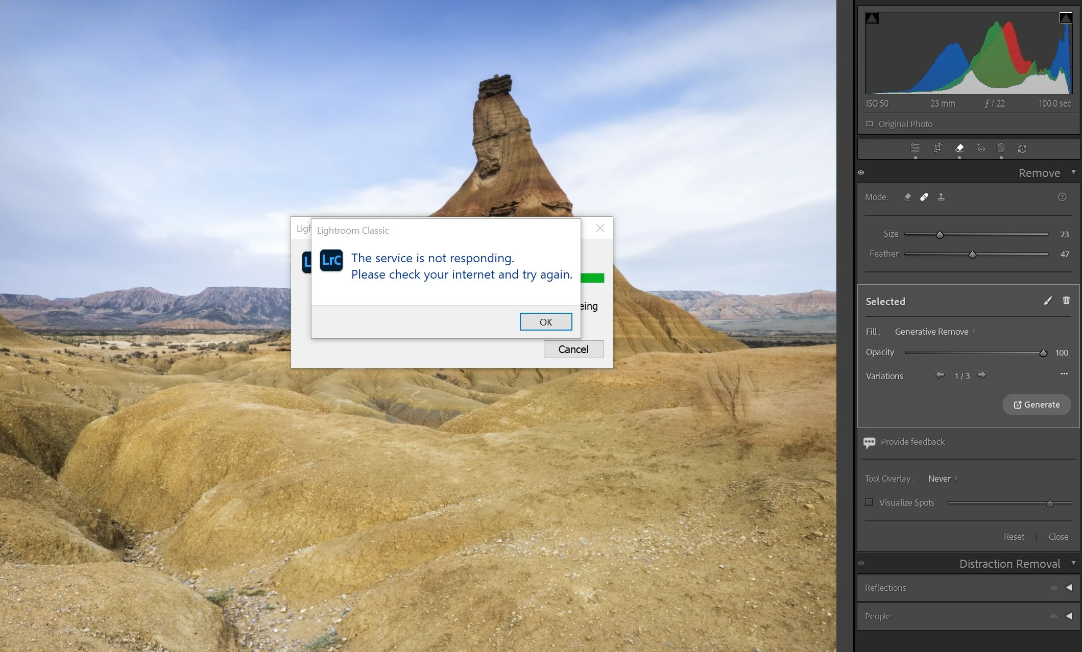 When a firewall or network router is blocking LR's network requests, there's usually a different error message than what you're seeing. Nevertheless, try these troubleshooting steps (or try them again, just in case):