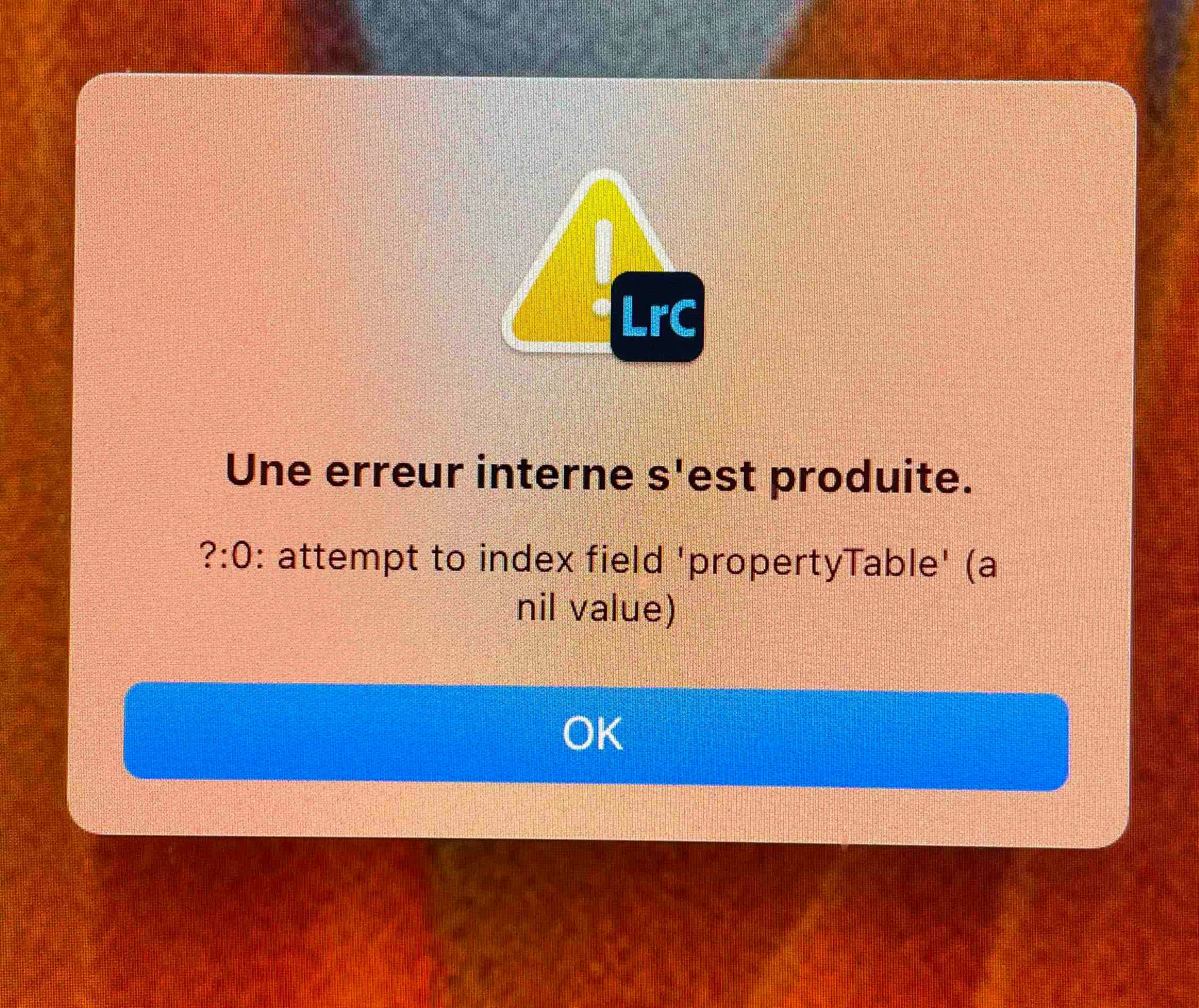 error message propertytable very recurrent