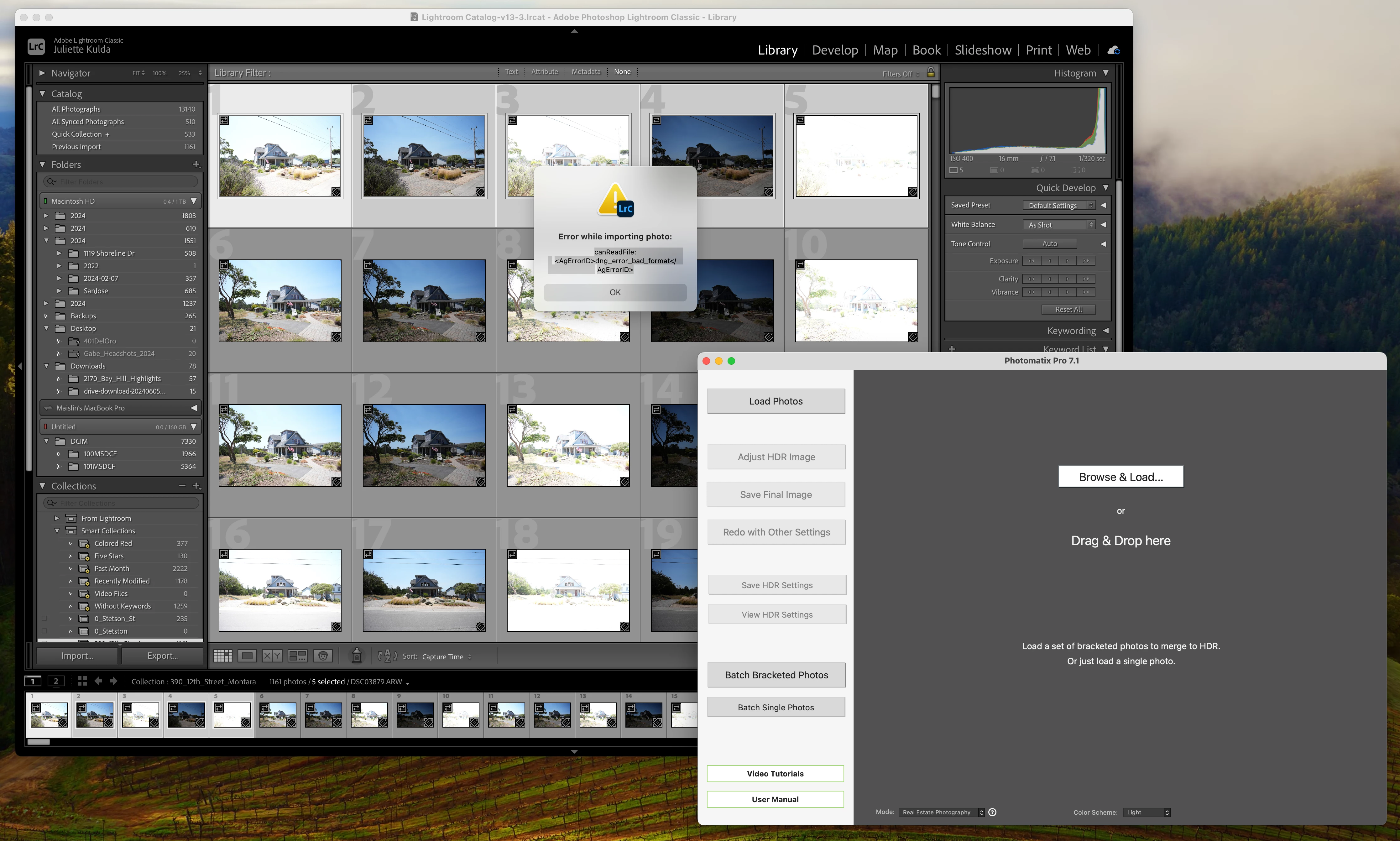 Hello I am getting the following error when I attempt to reimport Batched photos using Photomatix Pro 7. This error has not happened in the past and I have successfully used this software for several months now.