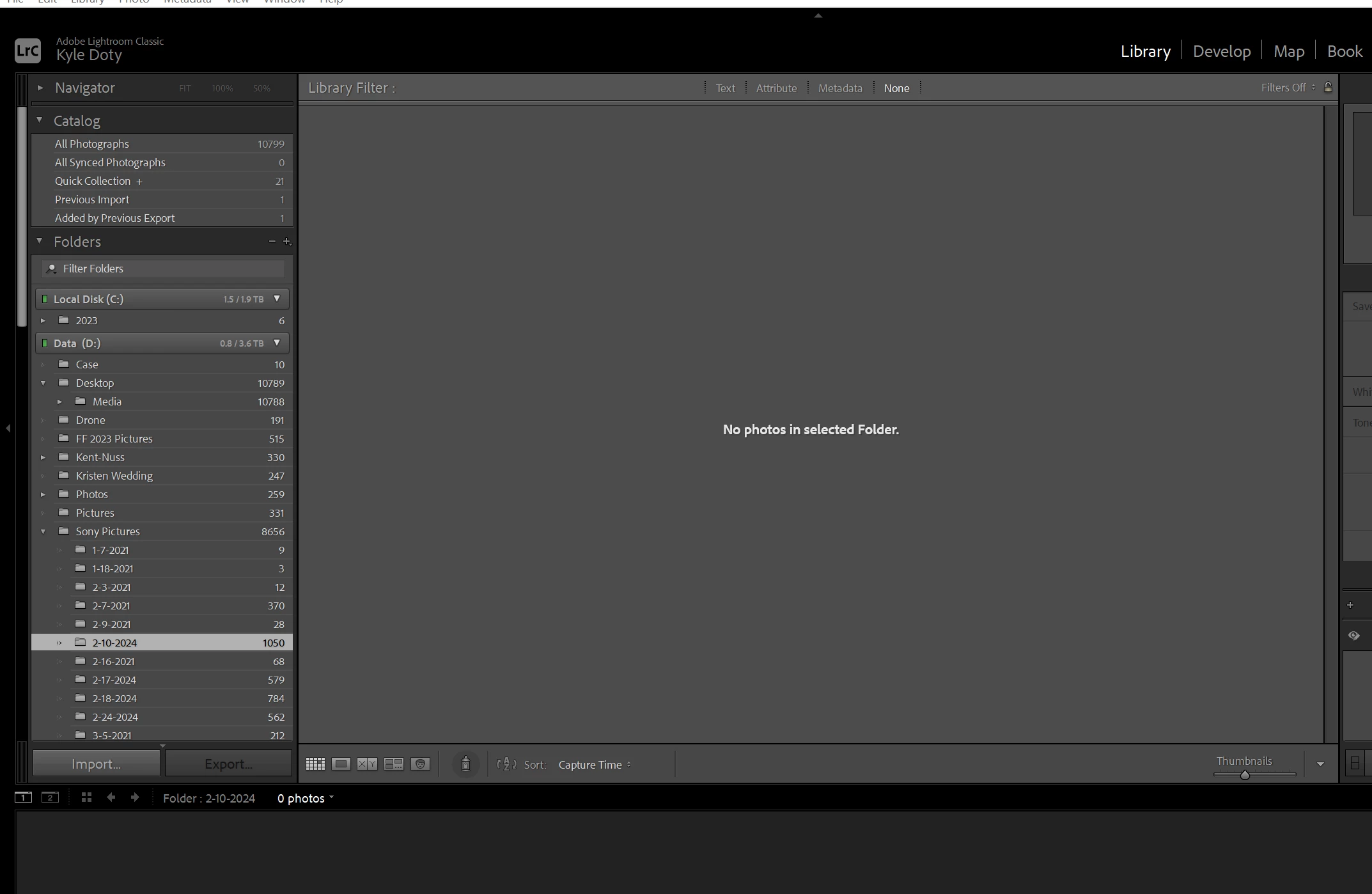 Every folder says "No Photos in Selected Folder" (internal hard drive)