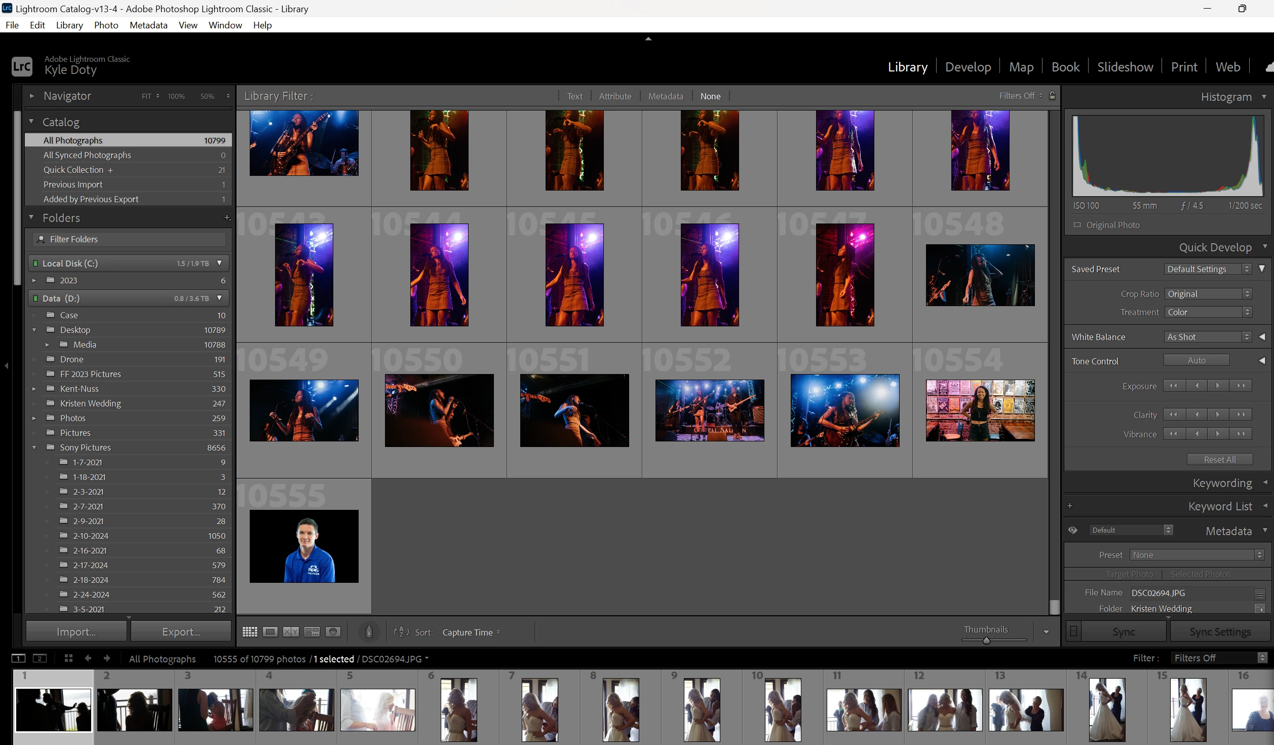 I was editing pictures and closed Lightroom to edit a recently exported photo in Photoshop. When I opened Lightroom back up, no files are showing in my D drive folders. They still show up under All Photographs with their most recent edits, but are not separated into their folders. There have been no changes to any pathways, and the last Lightroom catalog before the current one is from May. I really need these to be organized back in their folders without losing the edits. Using Windows.