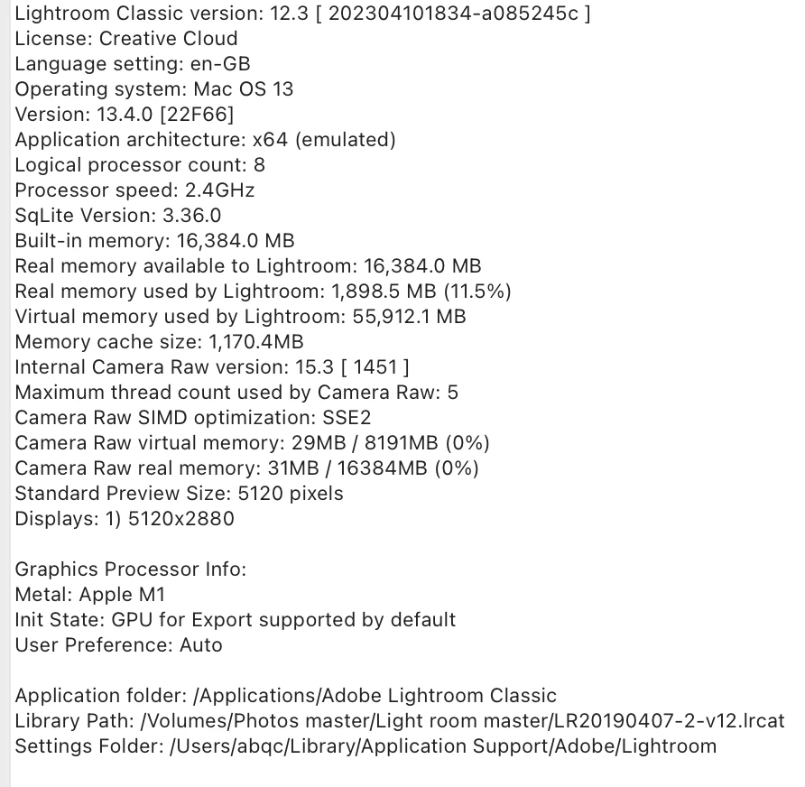 1. Please do the LR menu command Help > System Info and copy/paste the entire contents here so we can see exactly which versions of hardware and software LR thinks you're running.