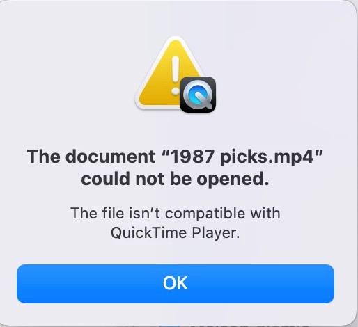 I have created numerous slideshows in LRC with music and successfully exported them as MPEG-4 files. However, I now find that they will not open in Quicktime or Mac Photos. The manual states that LRC saves them as H.264 MPEG-4 files, and that they can be opened in Quicktime and Photos, but the attached error message says otherwise.