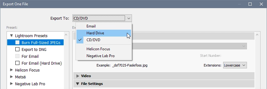 Can I export full size jpeg to an external hard drive instead of burning to CD or DVD?