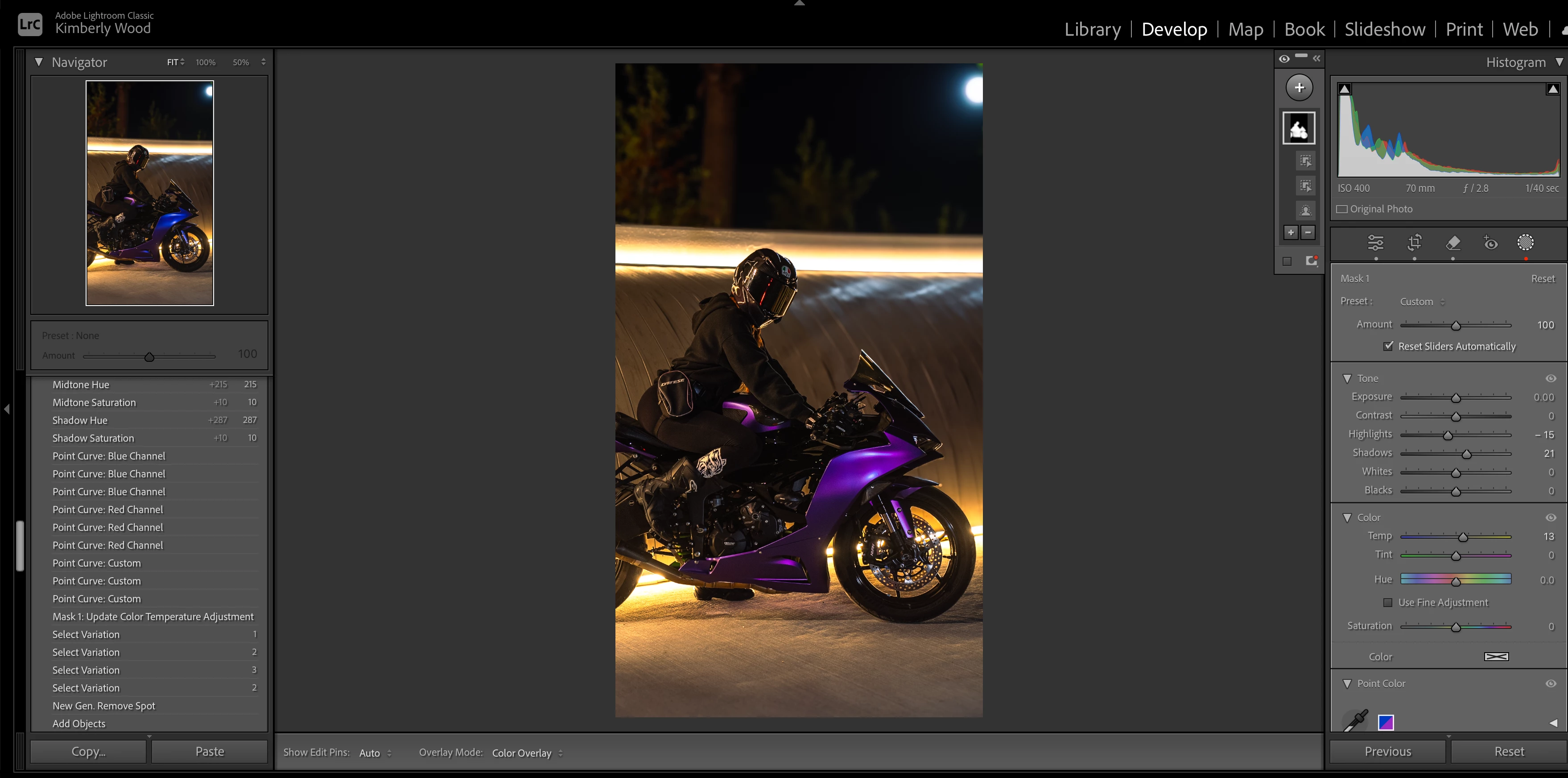 I attached a photo showing you this very weird issue. you can see that in the top left photo it's got blue on the bike. However in the main photo area it's purple. I want it to be purple but it doesn't export the purple one. It exports the blue one?????