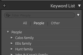 In the Keyword List panel, you can see just those keywords with the Person attribute (keywords that have been added via the People view):
