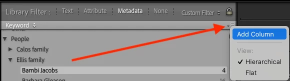 To make it much easier to bring up Keyword columns in the Metadata browser, define a filter preset "Keyword Columns" with (say) three columns: