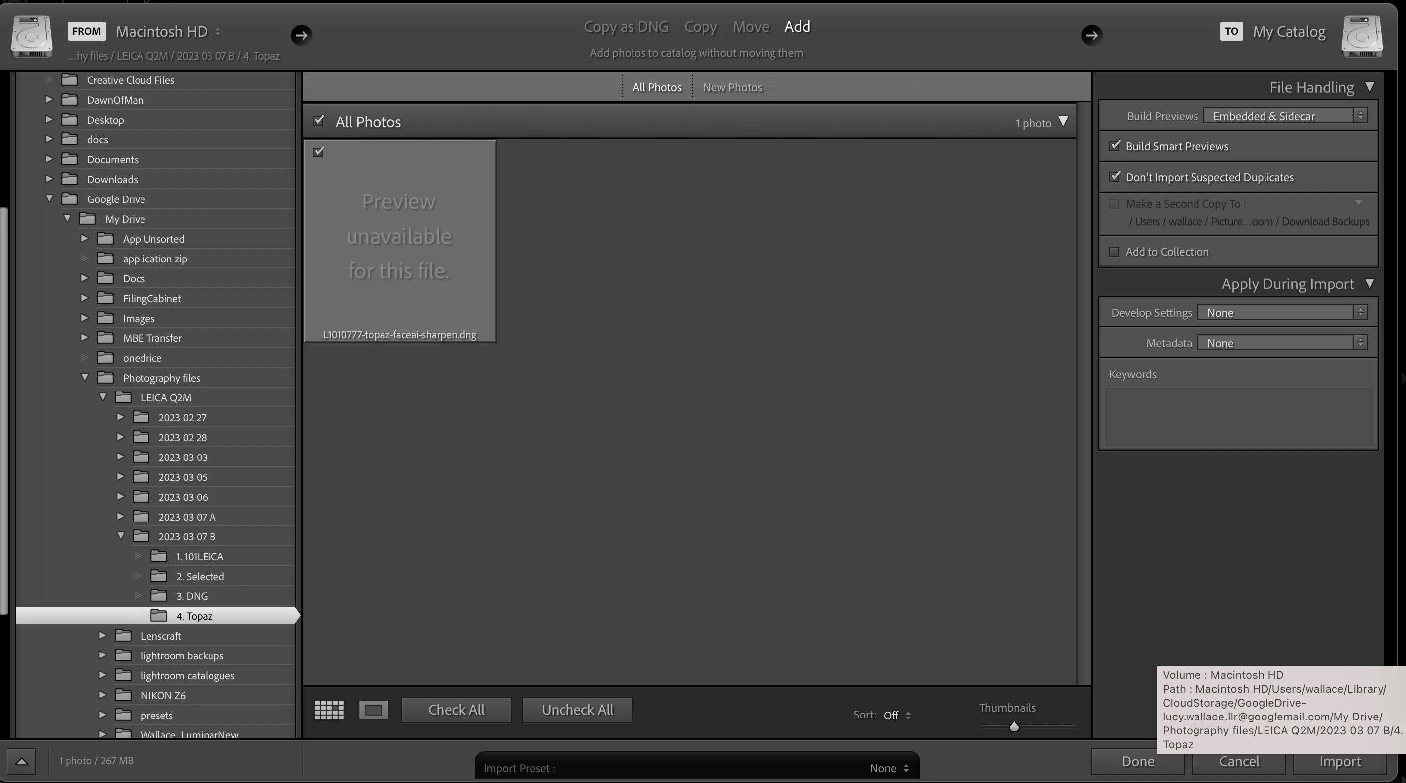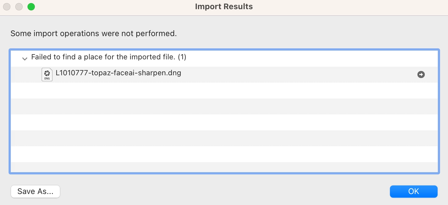 • Suddenly unable to import DNG files edited in Topaz, where this was previously successful
