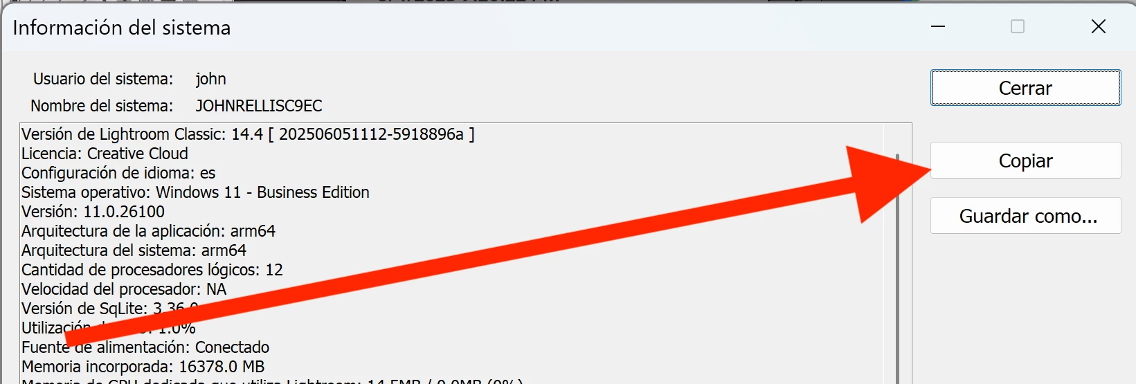 Memoria real disponible para Lightroom: 16326,0 MB