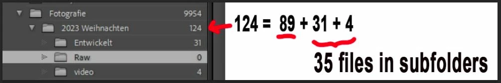 Im Screenshot sieht man was ich meine, der RAW Ordner ist leer aber auf der Festplatte sind Daten vorhanden.