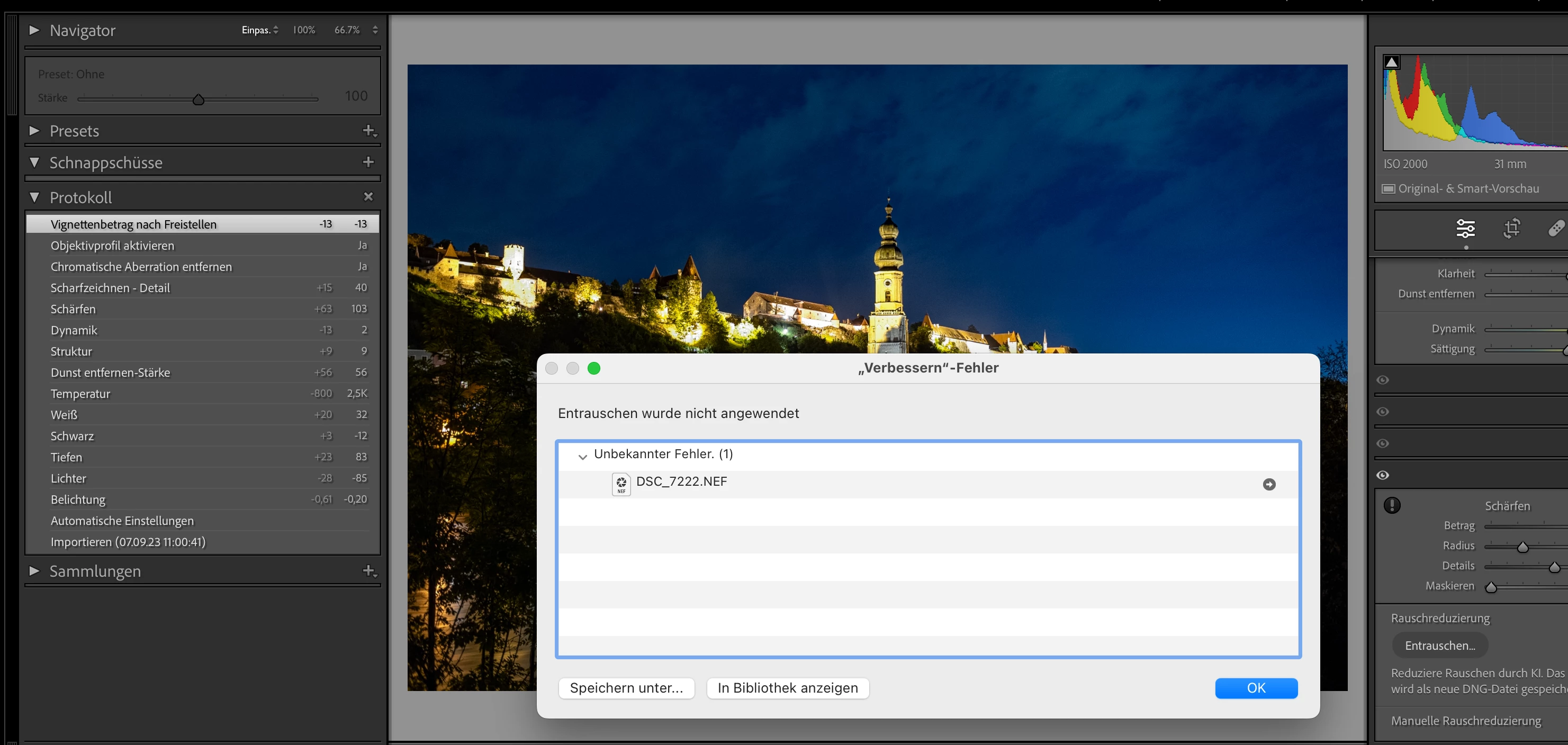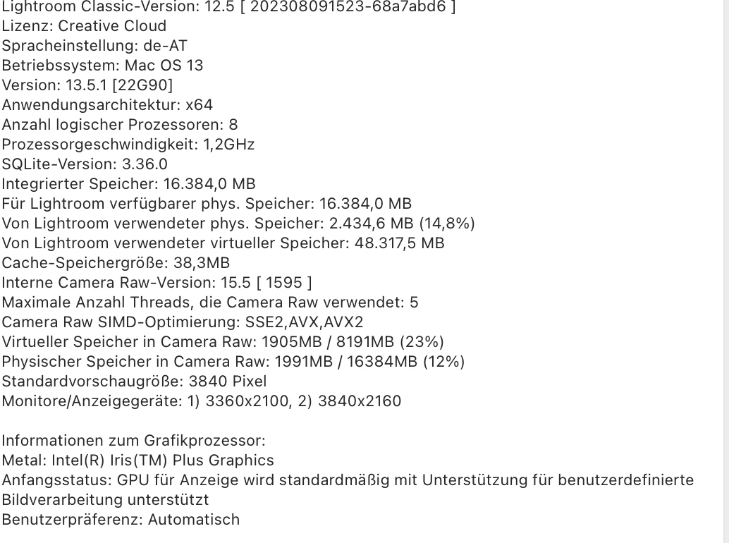 Fehler "Entrauschen KI" Lightroom 12.5 Mac OS 13.5.1
