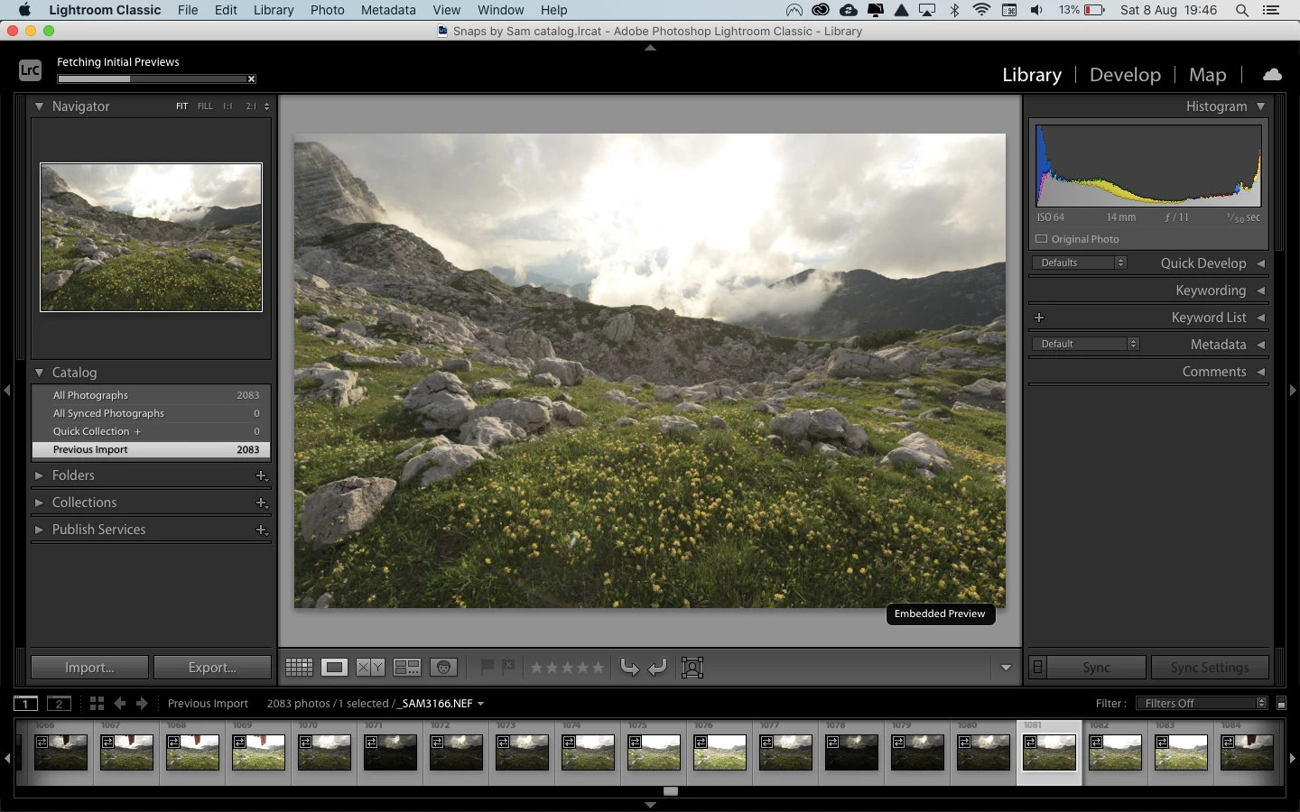 Since a while, after Lightroom is done importing the photos I selected, it starts "Fetching Initial Previews". It takes like forever and I can't figure out what Lightroom is actually doing and how to turn it off. Does anyone know what Lightroom is doing and how to work around this? I didn't have this "issue" before, also not when I imported like 1000+ photos at once. I've added a screenshot, you can see the progress bar I'm talking about in the top left corner.