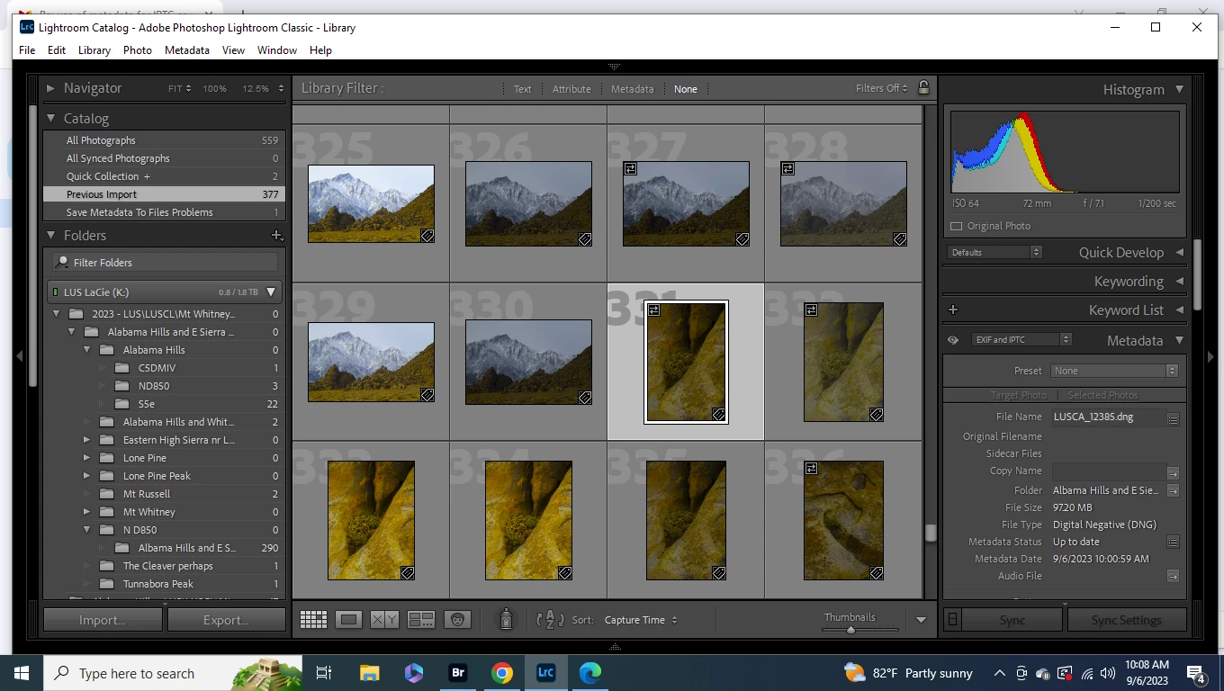 2. Only some of these appear below in the hard drive folders -- In this case for LUS Lacie (K:). All of the images previously imported were imported from these same folders from the hard drive. Second screenshot.