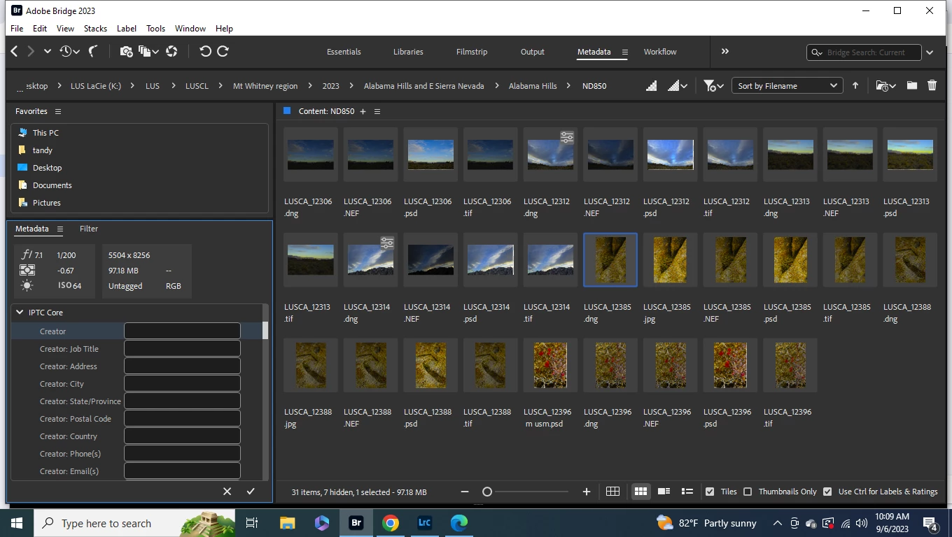 3. The original files and folders are all still visible in Bridge, but many lack metadata entered in Lightroom Classic. Third screenshot.
